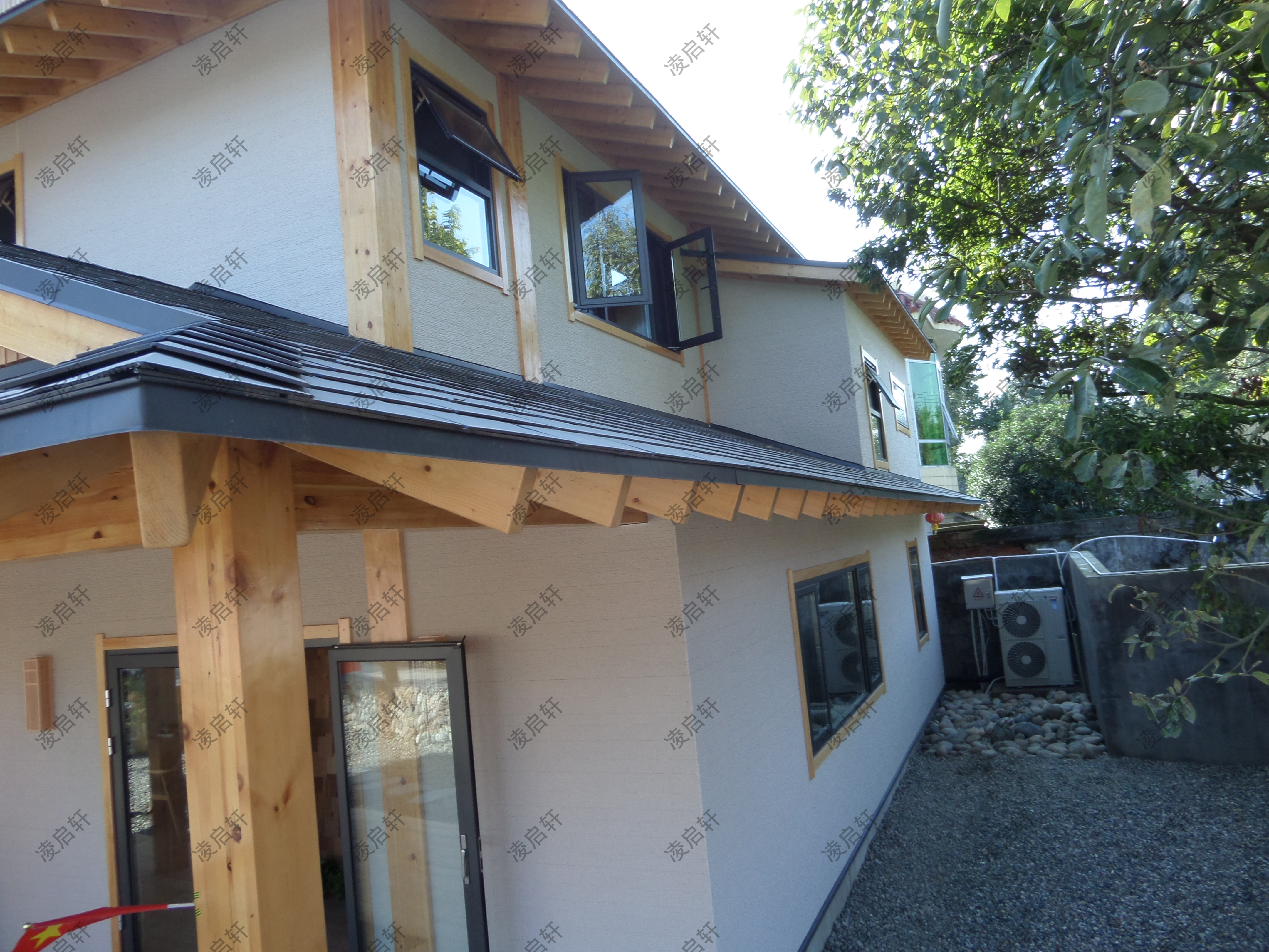 项目介绍:完成采用了日式建造手法,从设计到施工。日式建筑要求大挑檐、大连廊手法全部采用,整个建筑外观给人一种简单大方的设计手法,外墙全部采用纯日本进口水泥装饰一体板,外墙墙质感非常细腻。墙体采用复合型墙体,室外门窗采用最新系统门窗,使整个建筑保温、隔音、隔热、防水、防风、气密性特别好。